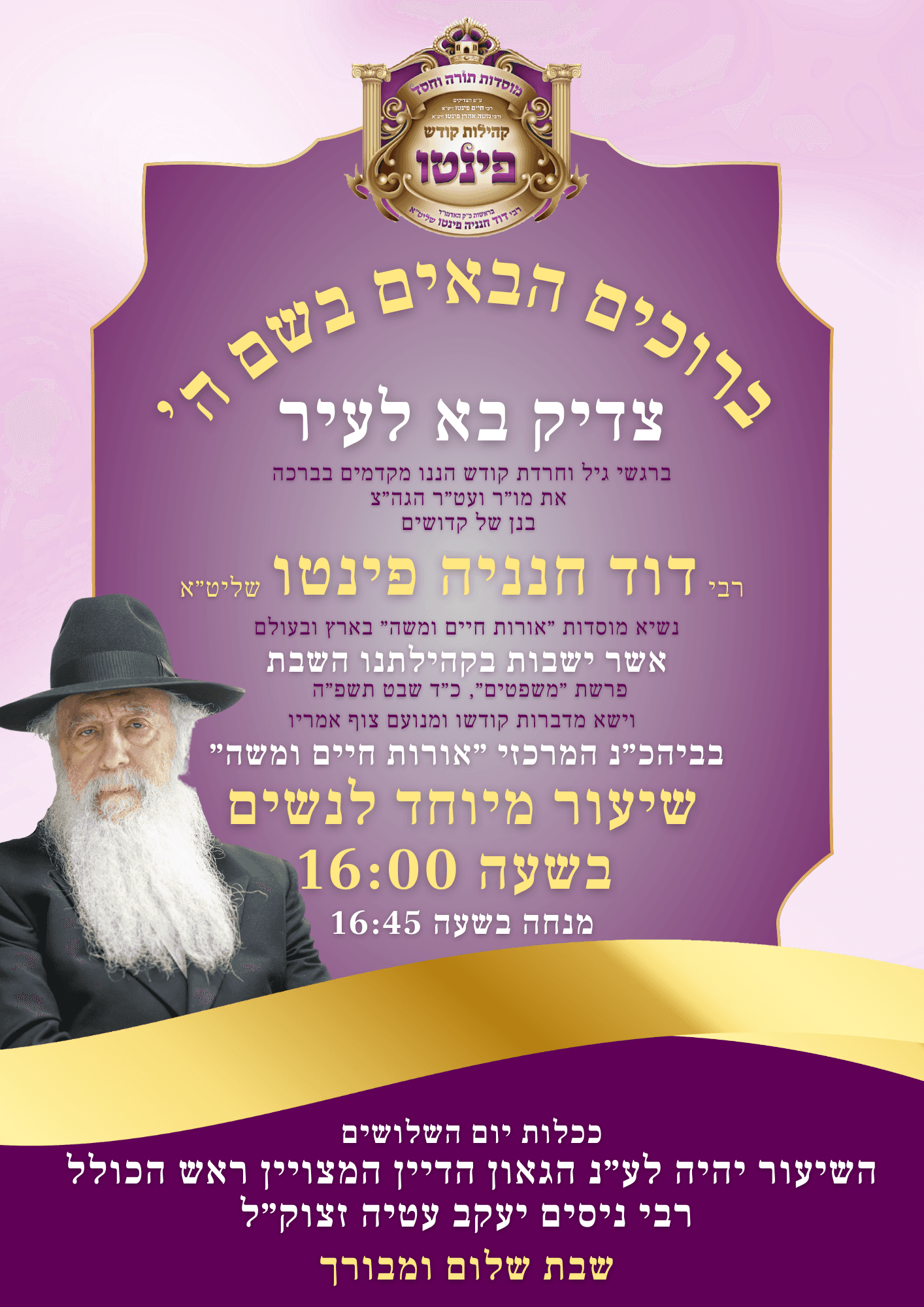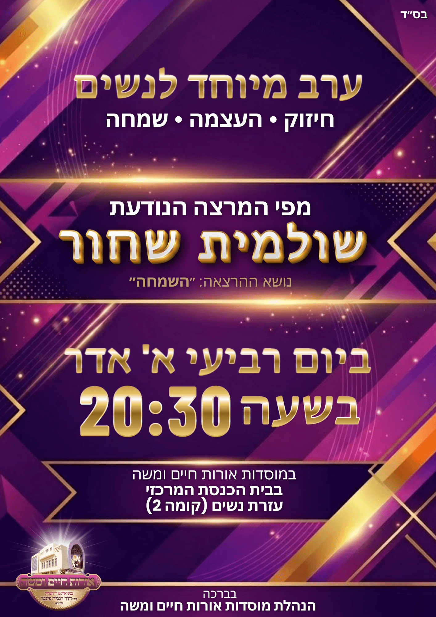 Hevrat Pinto is an association with a dynamic community that requires constant updates regarding galas and special events. The client needs a highly reactive partner to frequently create impactful visuals that clearly communicate essential details such as dates, times, and locations. The goal is to keep the community informed and engaged while maintaining a professional and professional image.